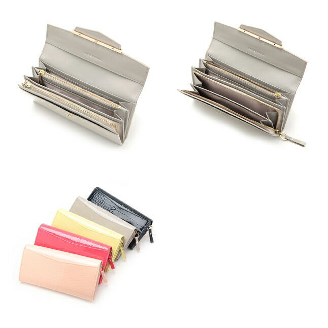 透明感と発色のよいエナメルレザーをポイントにしたオーソドックスなクロコの型押しを、カラーと金具色で女性らしく仕上げたシリーズ。