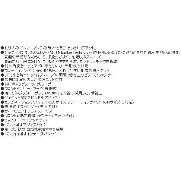 ・釣り人のパフォーマンスの最大化を目指した『コアアクト』・ジャケットには「GORE(R)C-KNITTMBackerTechnology」を採用。