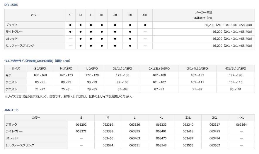 【ダイワ(Daiwa)】DR-1506 ゴアテックスR プロダクト コンビアップレインスーツ ブラック 3XL