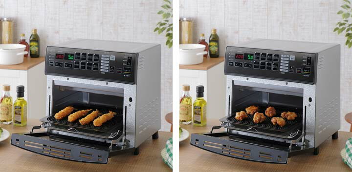 油で揚げず、余分な油も適度に落とすのでヘルシーに!高速熱風でムラなく加熱するから、早いのにおいしい。