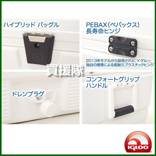 ・ハイブリッドバッグル・ステンレスヒンジ・ドレンプラグ・コンフォートグリップハンドル イグロークーラーは、漁師や釣人などから好まれています。